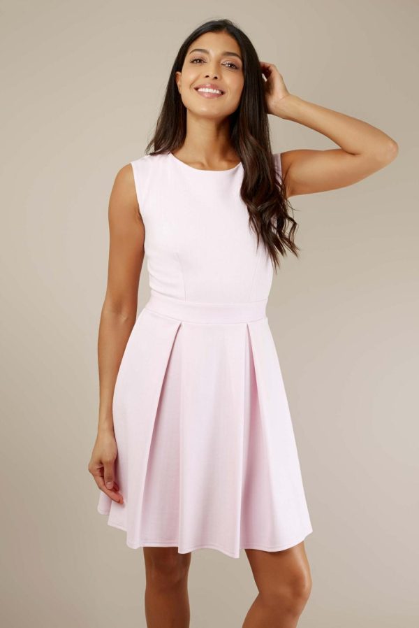 A soft pink pastel to add to your wardrobe, this pleated skater dress can be worn to your next garden party or dayccasion.