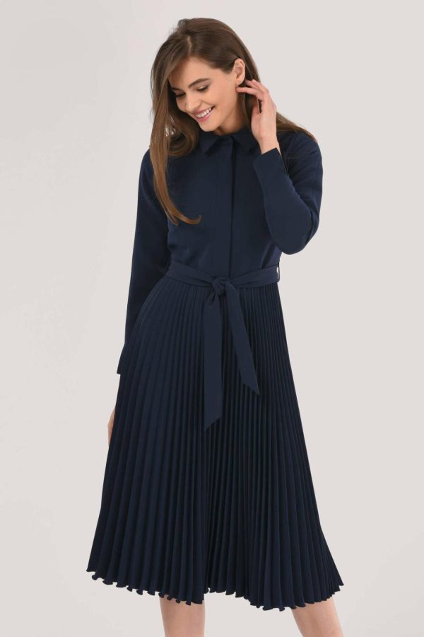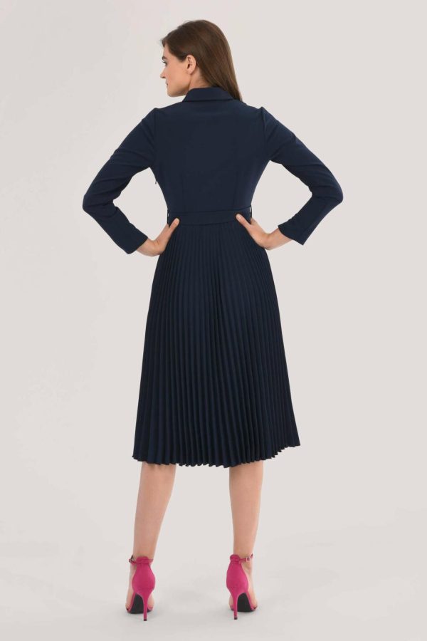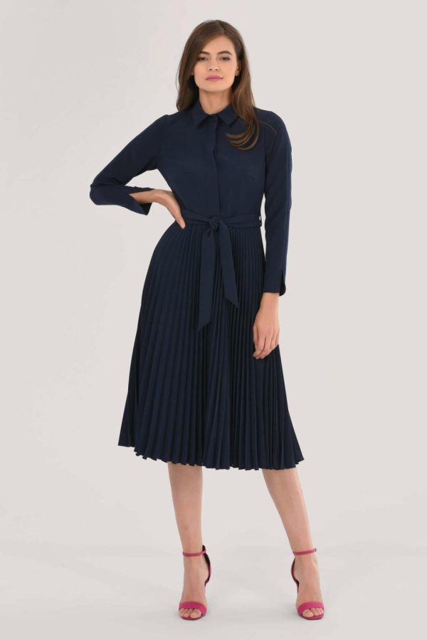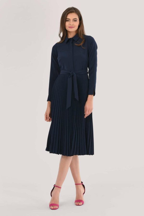 Women Closet London Pleated Dresses | Navy Velvet Wrap Dress