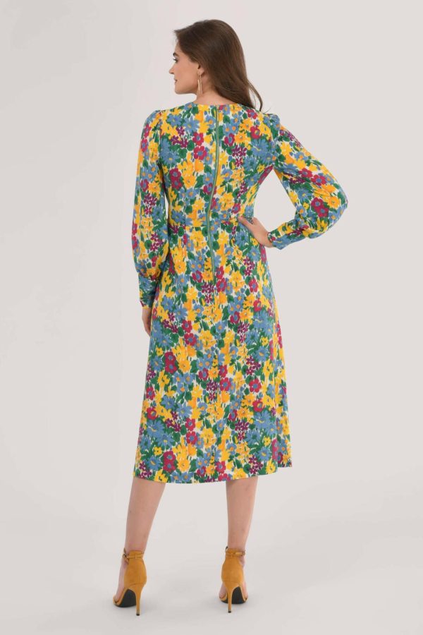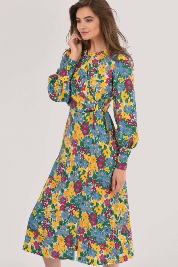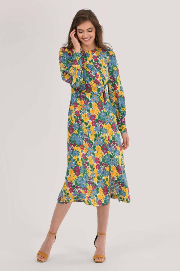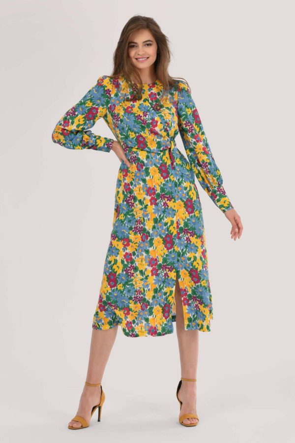 Women Closet London Print Dresses | Blue Floral Print Puff Sleeve A-Line Dress